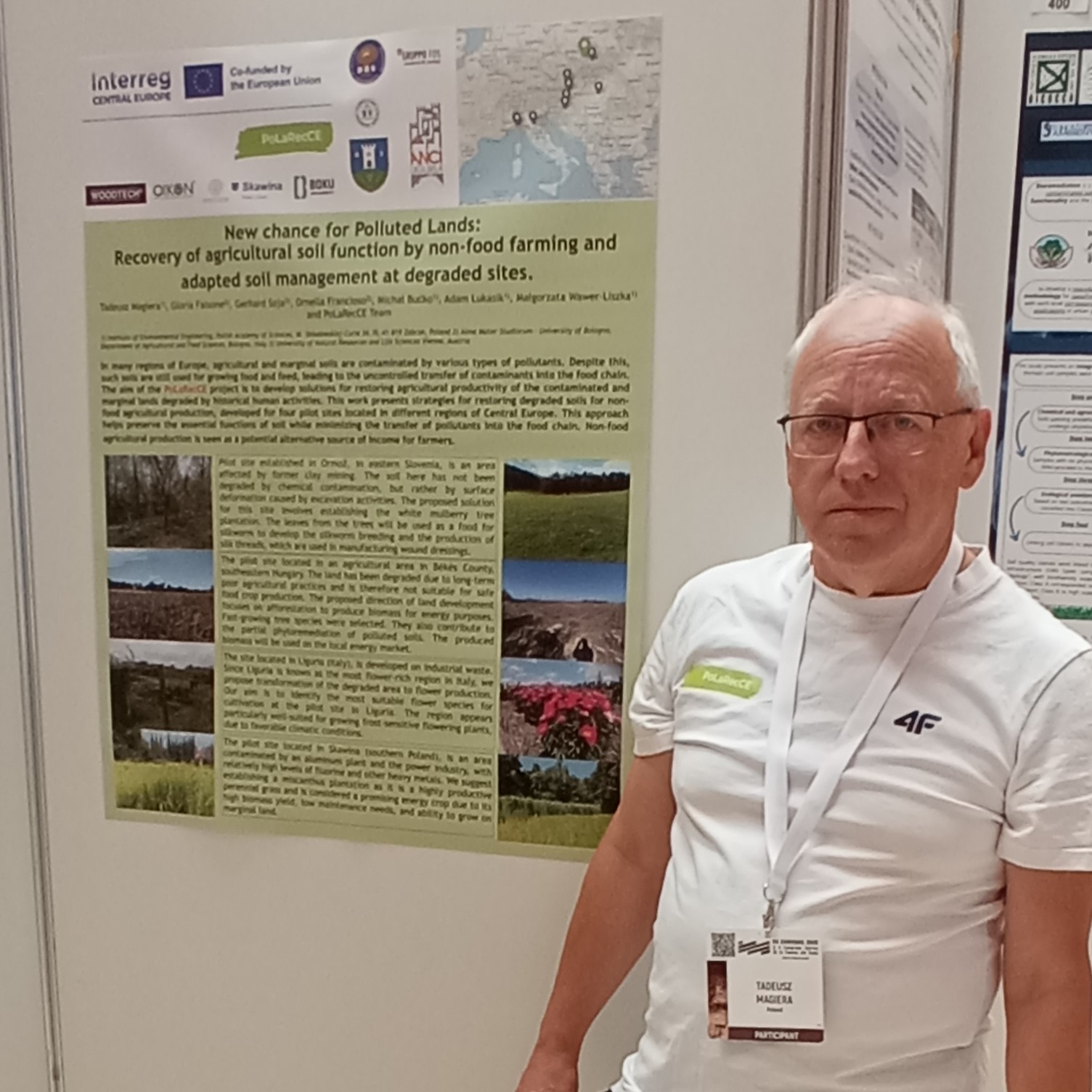 The EUROSOIL is held every four years and attracts a large audience of over 2500 participants who present their findings through oral and poster presentations across up to 10 parallel sessions. The event also features workshops and an exhibition of products and services aimed at raising awareness in society, facilitating the exchange of ideas and information and creating business opportunities. A poster of PoLaRecCE “New chance for Polluted Lands: Recovery of agricultural soil function by non-food farming and adapted soil management at degraded sites” was exposed during the first two days of the congress at the main hall of the congress center (Palacio de Exposiciones y Congresos) where the event took place. The poster presentation was a part of the section GT11. Soil Degradation, Desertification, Contamination – Conservation, Mitigation, Remediation and relevant abstract was published Advancing soil knowledge for a sustainable future. Book of abstracts: