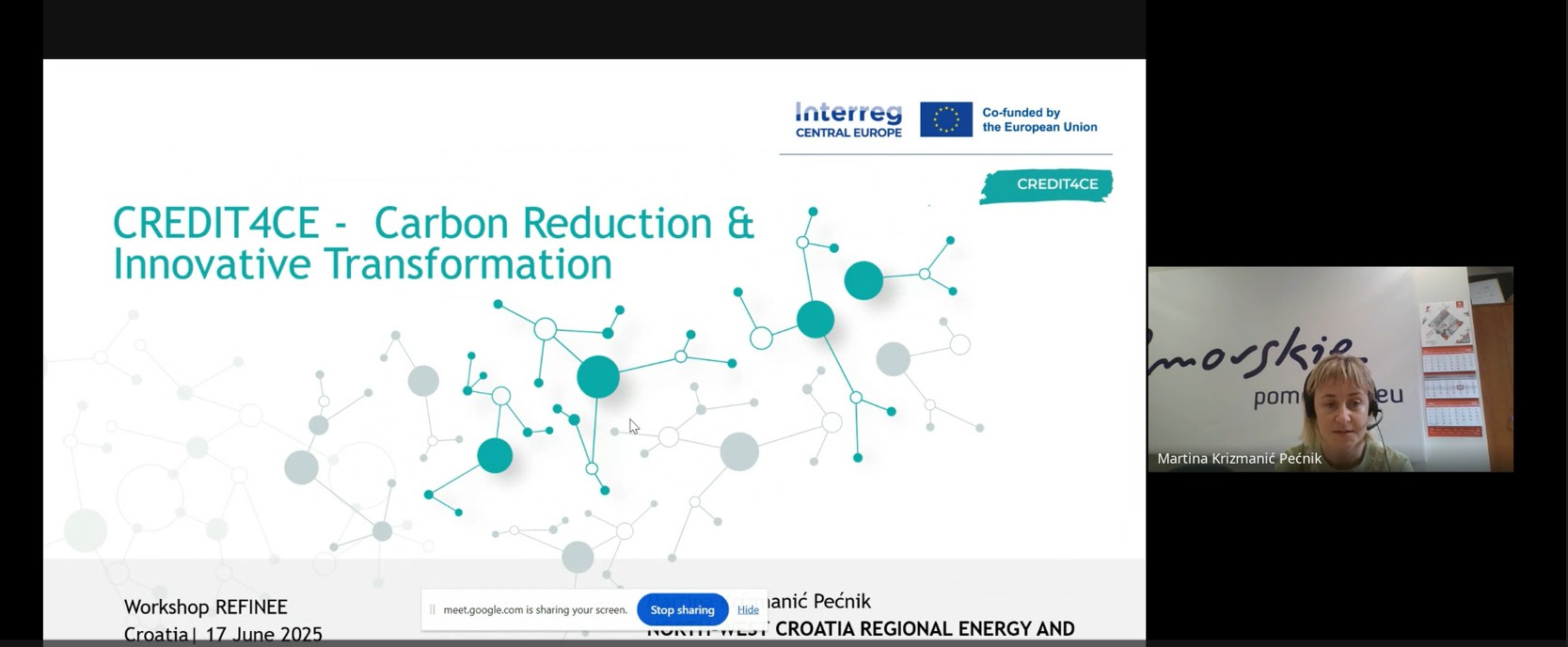 The workshop opened with a presentation of the CREDIT4CE project, delivered by Martina Krizmanić Pećnik (REGEA). The session outlined the project’s main objectives, key results, and ongoing achievements, while also reflecting on common implementation challenges. The discussion addressed topics such as the management and adaptation of KPIs, risk mitigation strategies, partner engagement, and effective communication within the consortium.