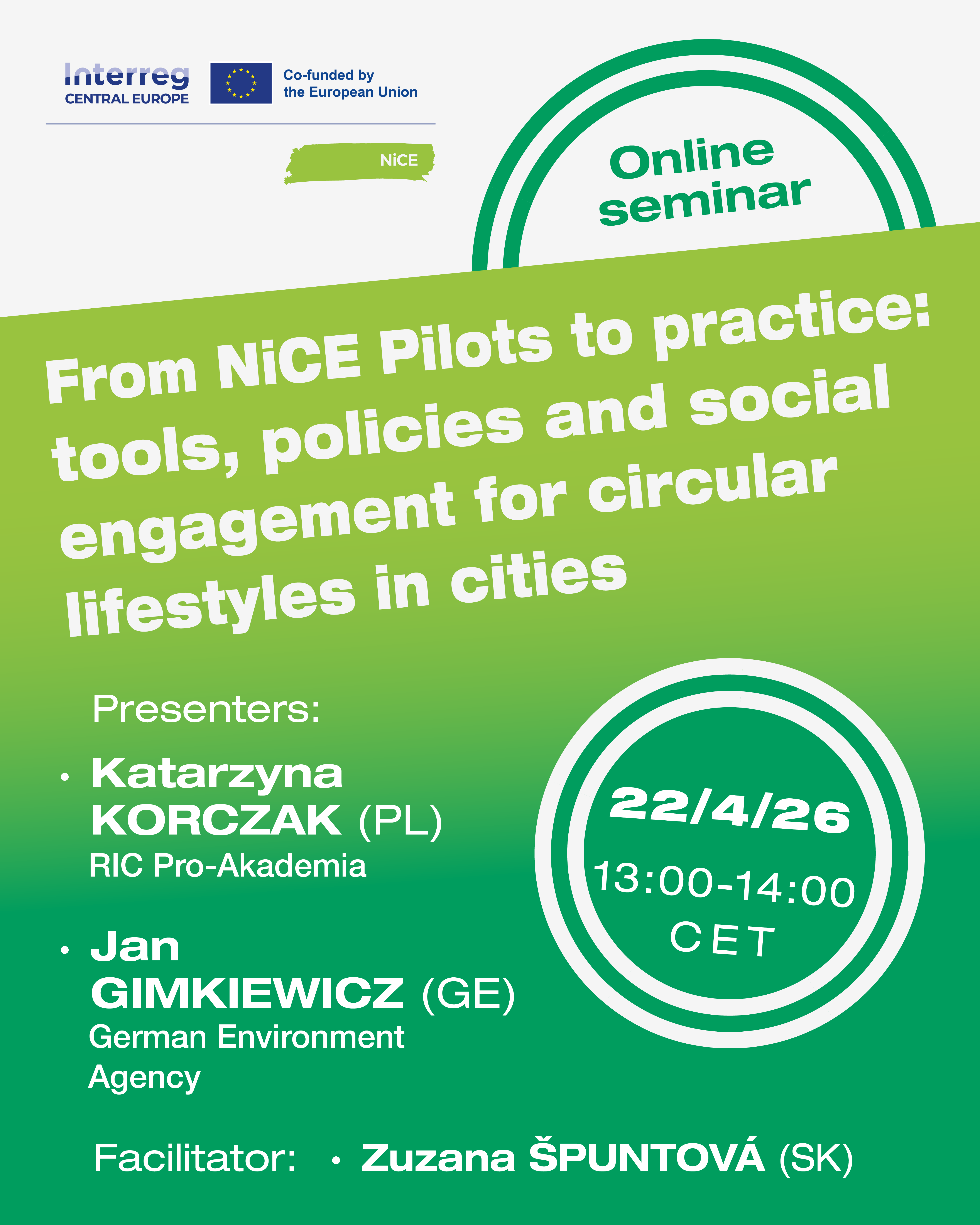 At our Transferability Conference, the NiCE project solutions and policy recommendations will be presented to EU experts, networks and policy makers, together with representatives of national and regional authorities. The conference will take place in Dessau-Roßlau, Germany, at the Headquartes of UBA. Its aim will be to mainstream the solutions to targeted local communities to achieve uptake of the solution models for circular lifestyles.